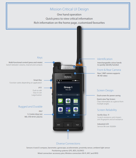 The latest in revolutionary technology for the two way radio industry is here with the Hytera Multi-Mode Advanced Two Way Radio – all of the nifty features in a smartphone compiled into an easy-to-use two way radio.